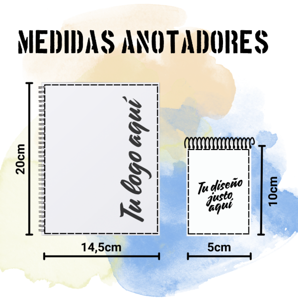 Aquí te ofrecemos dos tamaños de anotadores para que lo personalices con el diseño que gustes!