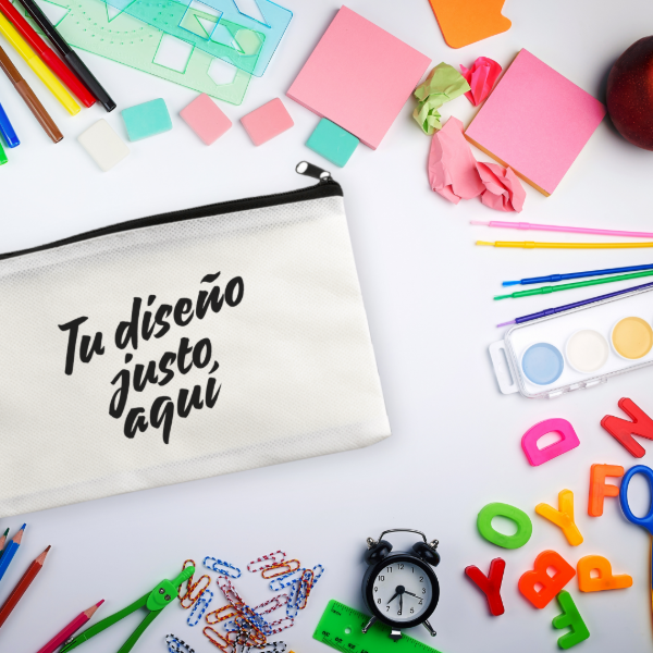 🔹 Personalización Completa: Le podemos colocar el diseño que gustes (Texto, foto, ilustración) en ambas caras de la Cartuchera.