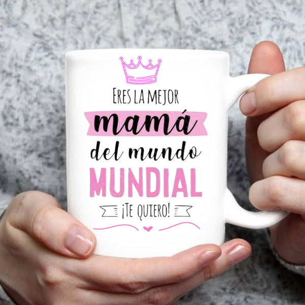 Acá tienes varios modelos de tazas con mensajes para el regalo del día de la madre.