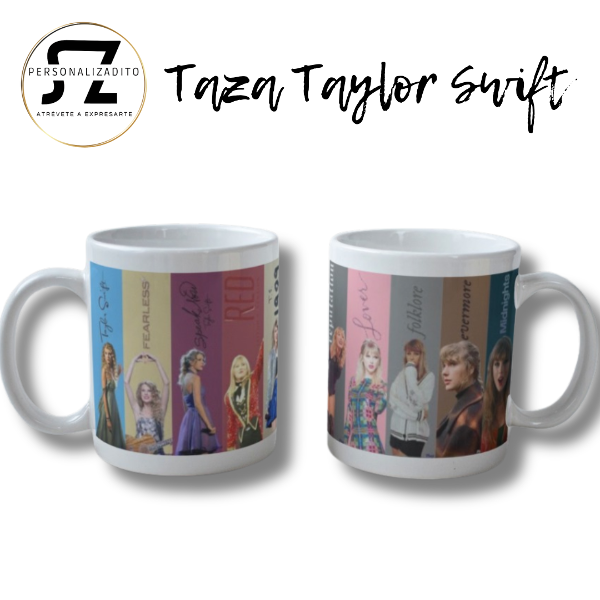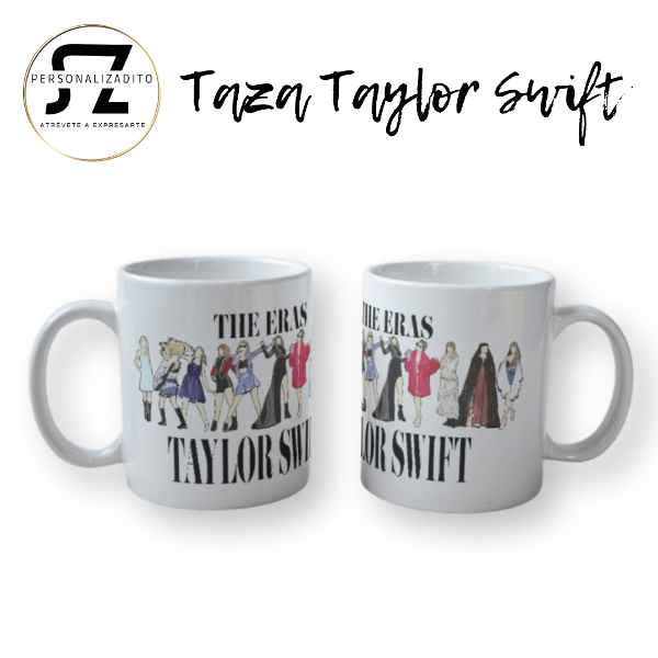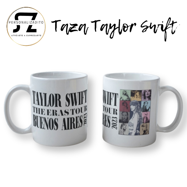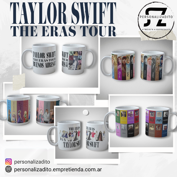Acá te dejamos unas tazas personalizadas de Taylor Swift, con las Eras de Taylor, los atuendos del tour, el ticket de entrada y mucho más.